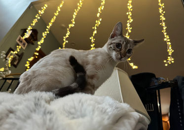 Queen Daenerys is an exquisite Seal Silver Lynx Point. Genetic testing shows that she carries for Seal Lynx Snow, Mink Snow, Silver and Charcoal. She will produce beautiful babies with defined clouded rosetted patterns and unique coloring. Her coat is silly soft, but her most defining feature is her vivid blue eyes. Queen Daenerys Snow is three (F3) generations from the Wild Asian Leopard. Her great grandmother was a purebred Asian Leopard! Daenerys possess a wild look, yet she is extremely affectionate. She could best be described as a naturally domesticated Asian Leopard!